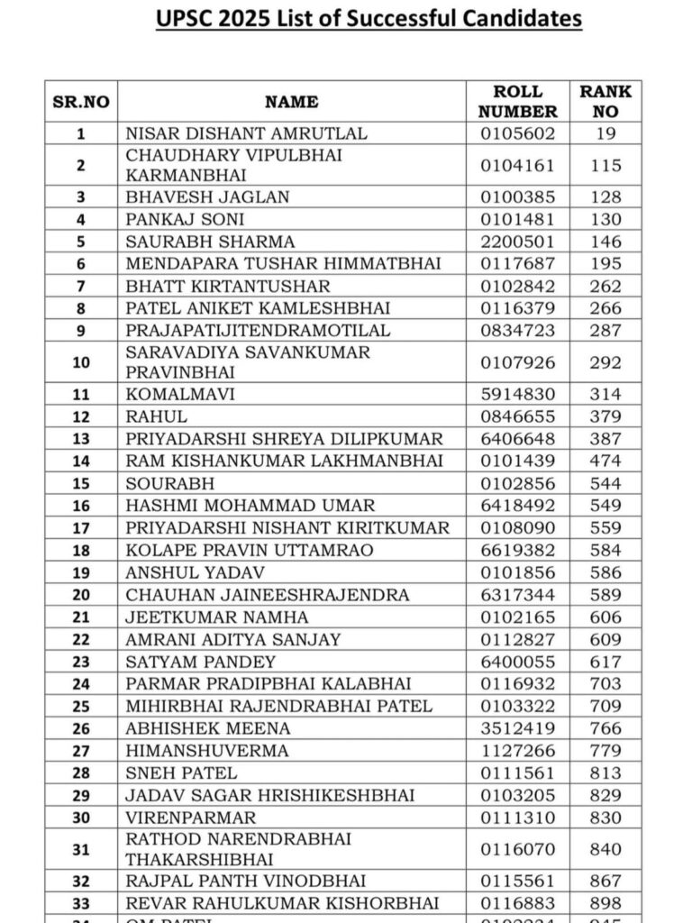 અમદાવાદ : દેશની પ્રતિષ્ઠિત Union Public Service Commission (UPSC)ની સિવિલ સર્વિસ પરીક્ષા 2025ના પરિણામોમાં ગુજરાતના 34 યુવાનોએ સફળતા મેળવી છે. અમદાવાદ સ્થિત Sardar Patel Institute of Public Administration (SPIPA)માં તાલીમ લીધેલા ઉમેદવારોના આ પ્રદર્શનને રાજ્ય માટે ગૌરવની ક્ષણ માનવામાં આવી રહી છે.