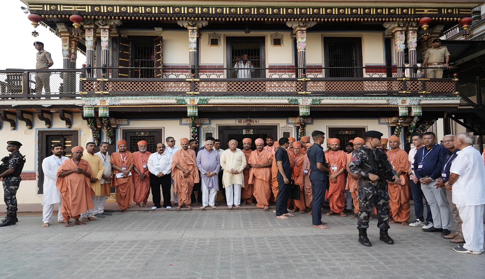 પછી તેઓ આચાર્યશ્રી રાકેશપ્રસાદજી મહારાજ સાથે વડતાલના દ્વિશતાબ્દી સભાગૃહમાં પહોંચ્યા, જ્યાં વડતાલ ગાદી અંતર્ગત આવતાં ગઢપુર, ધોલેરા, સાળંગપુર અને જુનાગઢ મંદિરોના ટ્રસ્ટીઓ તેમજ આગેવાન હરિભક્તોએ તેમનું સ્વાગત-અભિવાદન કર્યું.